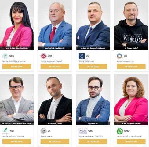 - Wydział Rolnictwa i Leśnictwa – dr hab. inż. Paweł Sulima, prof. UWM;