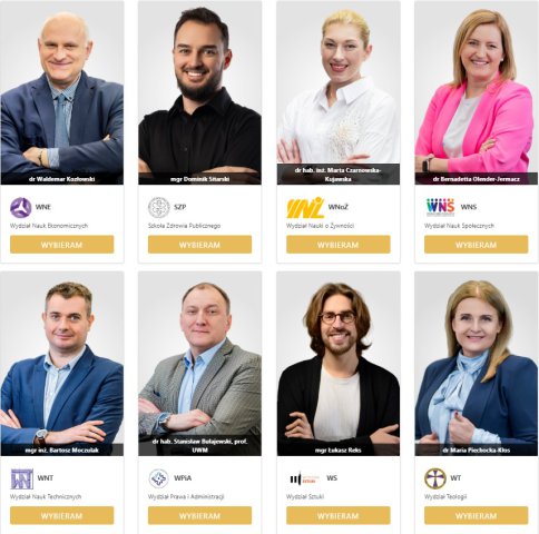 - Wydział Nauk o Żywności – dr hab. inż. Marta Czarnowska-Kujawska;