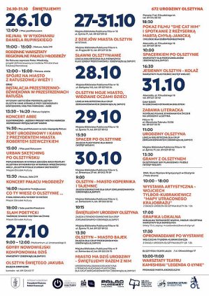 Świętowanie 672. urodzin Olsztyna potrwa do 31 października. Szczegóły wydarzeń na najbliższe dni podajemy poniżej.