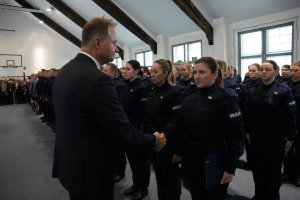 - Bardzo Wam dziękuję, że to, co w Was kiełkowało, spełniło się finalnie dzisiaj. I gratuluję Wam serdecznie. Wielokrotnie, jak ktoś mnie pyta, czy warto wstąpić do Policji, odpowiadam, że warto. Bo jest to służba nietuzinkowa. Służba, w której się przebywa 24 godziny na dobę. Mam nadzieję, że po niełatwym szkoleniu, a potem adaptacji, utwierdzicie się w fakcie, że warto.