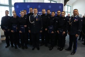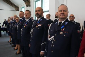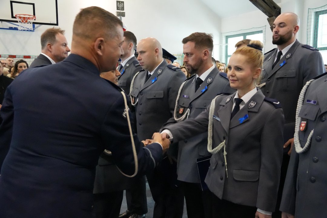 Piątkowa uroczystość była też okazją do wręczenia awansów na wyższe stopnie służbowe. Na stopień młodszego aspiranta Policji mianowanych zostało 3 funkcjonariuszy, a na stopień sierżanta Policji mianowanych zostało 10 funkcjonariuszy.