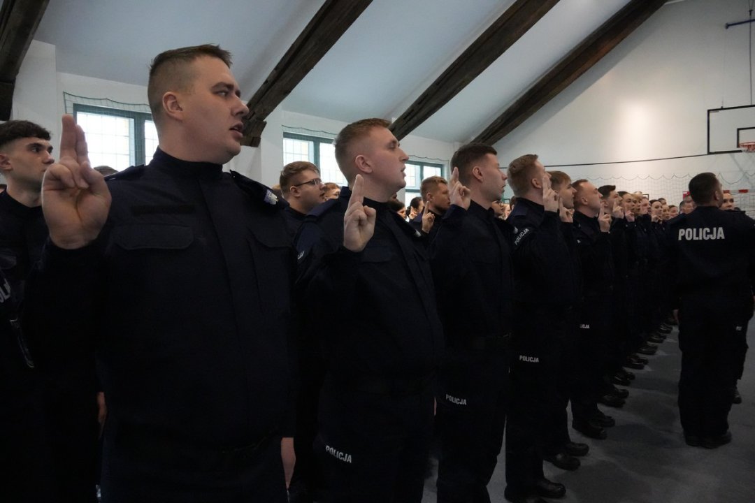 W środę (14 stycznia) w sali Oddziału Prewencji Policji Olsztynie odbyło się pierwsze w 2026 roku ślubowanie. Rotę ślubowania odczytał Komendant Wojewódzki Policji w Olsztynie insp. Mirosław Elszkowski, a za nim powtórzyło ją 77 nowych policjantów. W tym gronie było 36 kobiet i 41 mężczyzn.