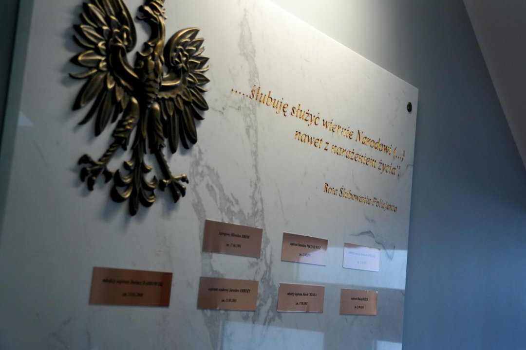 Podczas uroczystości część policjantów miała również przypięte do munduru niebieskie wstążki. Jest to oficjalny symbol kampanii INTERPOLU „Pamiętamy o poległych funkcjonariuszach”, w którą włączyli się także warmińsko - mazurscy policjanci. Przed rozpoczęciem uroczystości insp. Mirosław Elszkowski Komendant Wojewódzki Policji w Olsztynie wraz ze swoimi zastępcami złożył kwiaty pod tablicą pamiątkową poświęconą funkcjonariuszom, którzy stracili życie w trakcie wykonywania obowiązków służbowych. To symboliczny gest pamięci wobec tych, którzy oddali życie w imię bezpieczeństwa innych. W trakcie uroczystości minutą ciszy uczczona została pamięć sierż. Klaudii Nasiadko, która na początku stycznia br. zginęła w wypadku drogowym w drodze na służbę.