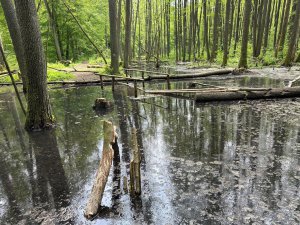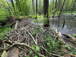Nic więc dziwnego, że działalność bobrów jest na tym obszarze widoczna – ta pozytywna, jak i powodująca szkody. Zwierzę to jest nierzadko nazywane "hydrologiem lasu", poprzez m.in. podnoszenie poziomu wód gruntowych oraz wpływ na bioróżnorodność. Niezaprzeczalne są natomiast także negatywne strony aktywności bobrów – zalewanie lasów, pól oraz zniszczenia drzew.
