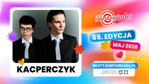 Dziś organizatorzy odkrywają kolejną kartę i ogłaszają powrót dobrze znanego kortowiadowej publiczności duetu Kacperczyk. Zadebiutowali w 2020 roku, a obecnie mają na koncie już kilka albumów oraz setki zagranych koncertów, które gromadzą wierne grono fanów. Ich najnowsza płyta, Wszyscy jesteśmy Kacperczyk, ukazała się w październiku 2025 roku i spotkała się z bardzo dobrym odbiorem słuchaczy.