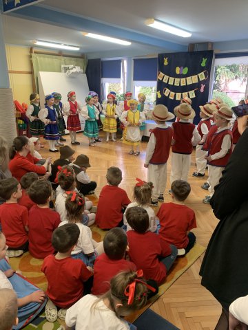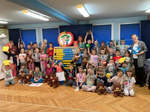 I mamy coś, co dzieci uwielbiają: Ruch + Muzyka = Matematyka*. Dzięki temu utrwalamy kierunki, schemat ciała, liczenie, rytmy i sekwencje. Dzieci tańczą, maszerują, zatrzymują się na sygnał, zmieniają stronę, liczą kroki, powtarzają układy, zaś matematyka staje się atrakcyjną zabawą.