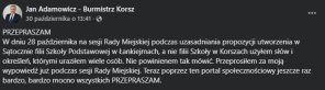 Do tematu odniosła się też jedna z radnych gminy, Krystyna Borzęcka. We wpisie, który pojawił się w jej mediach społecznościowych, podkreśliła, że nie może pogodzić się z tym, że „w przestrzeni publicznej padły słowa, które mogły zranić dzieci i rodziców”.