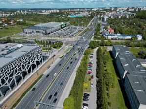 Skrzyżowanie al. Sikorskiego z ul. Tuwima z lotu ptaka