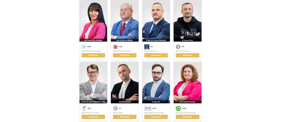 - Wydział Prawa i Administracji – dr hab. Stanisław Bułajewski, prof. UWM;