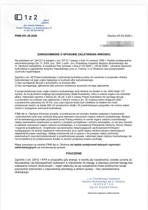 Stanowisko Powiatowego Inspektoratu Nadzoru Budowalnego dla miasta Olsztyna