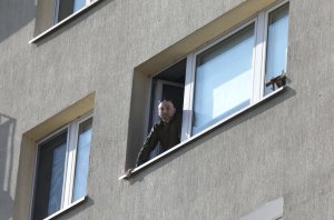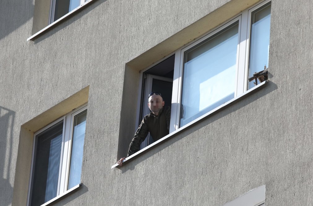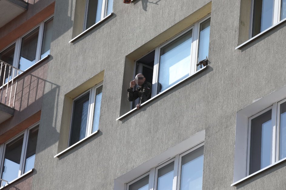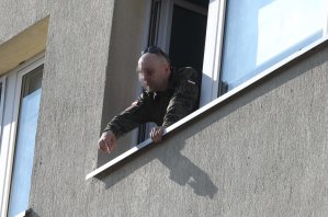 34-latek co jakiś czas podchodzi do okna i krzyczy do służb m.in. "weźcie się do uczciwej pracy". Nasz reporter usłyszał z kolei, że "wywiady będą później".