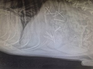 Okazało się, iż specjaliści usunęli z żołądka czworonoga aż 18 gwoździ.