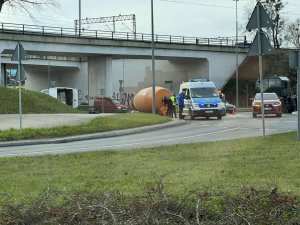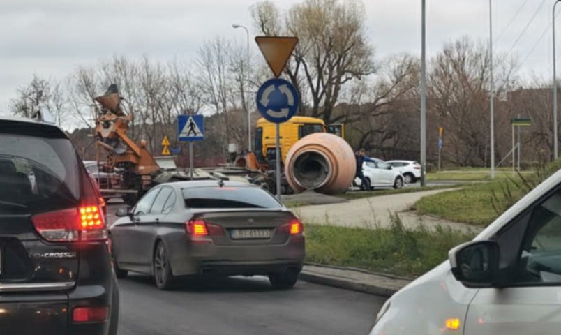 Kierującemu betonowozem odpadł bęben (tzw. "gruszka"), która umożliwia przewóz i mieszanie ciekłej mieszanki betonowej. Substancja wylała się na pobocze drogi, trawnik oraz część chodnika.