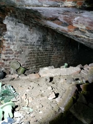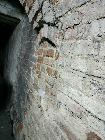 Na zdjęciach możemy zauważyć zamurowane korytarze. Cegły różnią się od oryginalnych, co wskazuje na późniejsze zablokowanie przejścia. Do tego, zauważono tunel, który umożliwiał przejście w kierunku miasta jeszcze pod koniec XX wieku.