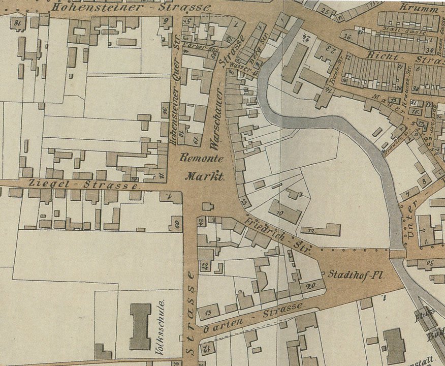 Pierwotnie nazywał się Pferd-Markt, czyli „targ koński”. Nie był to więc „plac miejski” sensu stricte, tylko przestrzeń gospodarcza na obrzeżu dawnego miasta.