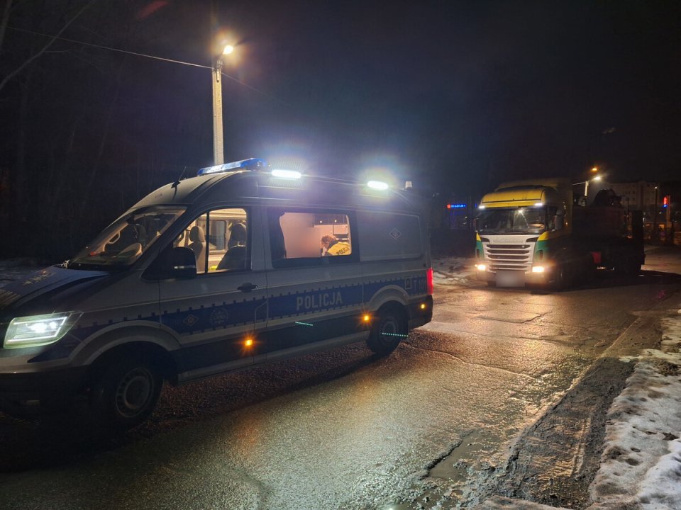 W poniedziałek (2 marca) po godzinie 1 w nocy mundurowi zauważyli jadący aleją Sikorskiego w Olsztynie zestaw ciężarowy z koparką ustawioną na naczepie. Policjanci zwrócili uwagę na to, że ciągnik miał uszkodzone światła i pękniętą przednią szybę. Poza tym ładunek istotnie wystawał poza obrys naczepy i nie był odpowiednio oznaczony.