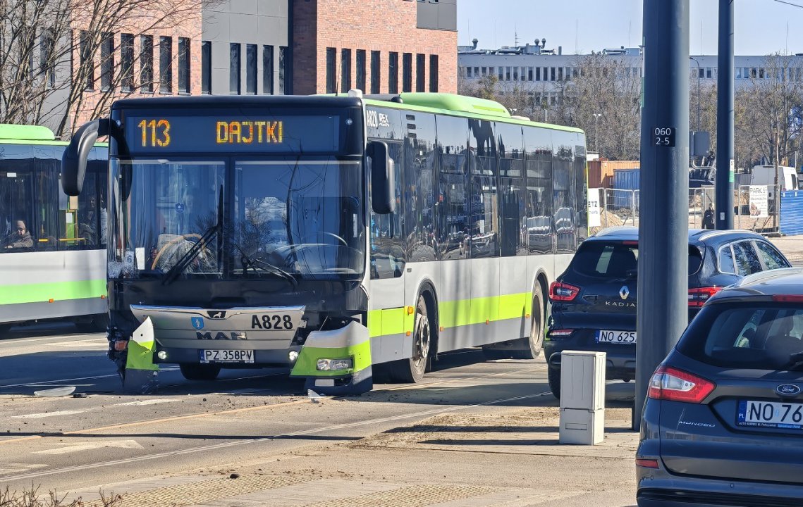 Chwilę strachu przeżyli pasażerowie linii nr 113 w Olsztynie. W poniedziałek przed południem autobus miejski, przewożący ok. 20 osób, na wysokości stadionu miejskiego przy al. Piłsudskiego 69A zderzył się z samochodem marki Renault