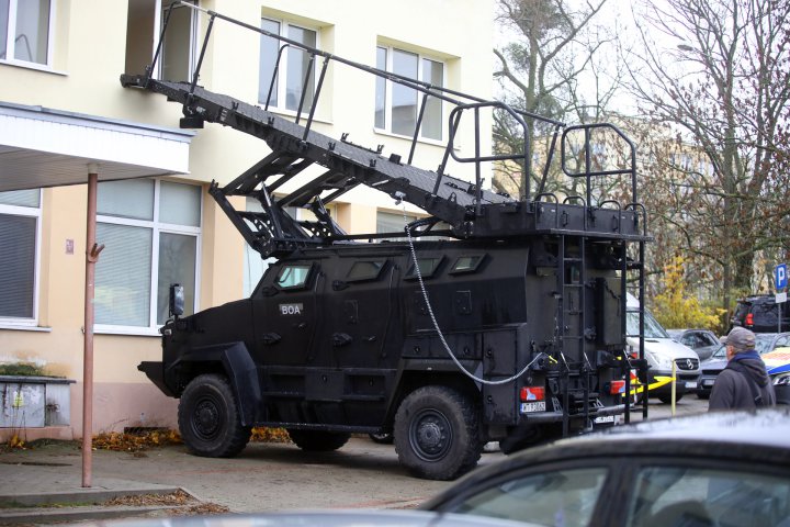 Dzisiaj przed południem otrzymaliśmy od naszego Czytelnika zdjęcie terenu przed dawnym akademikiem nr 11 (tzw. Bratniakiem) przy ul. Żołnierskiej w Olsztynie. Poza radiowozem i karetką, widać na nim opancerzony samochód Centralnego Pododdziału Kontrterrorystycznego Policji - BOA. "Jakaś akcja antyterrorystyczna" - napisał autor fotografii (widocznej na dole artykułu).