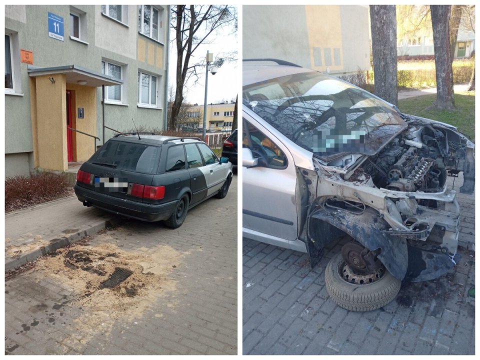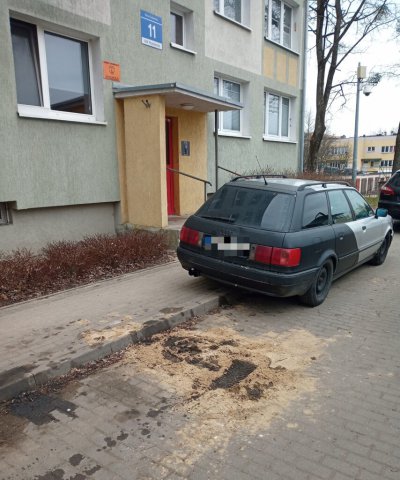 W czwartek (2 kwietnia) zgłoszenie dotyczyło pojazdu Peugeot, który uległ wypadkowi, a jego właściciel chciał przeprowadzić naprawy pod blokiem. Podczas napraw wiele części auta zostało porozrzucanych wokół pojazdu, dodatkowo z silnika na ulicę wyciekły płyny eksploatacyjne.