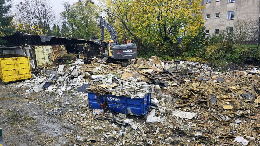 W poprzednim tygodniu na miejscu pojawił się ciężki sprzęt i rozpoczęto rozbiórkę nieruchomości. Aktualnie po budynku pozostał już tylko gruz czekający na wywózkę.
