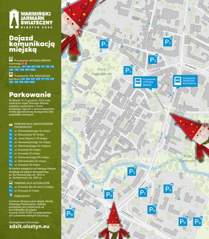 Do wjazdu na teren jarmarku uprawnione będą jedynie służby miejskie, pojazdy z zaopatrzeniem (w godzinach 6:00-12:00) oraz mieszkańcy zabytkowych kamienic, zlokalizowanych na terenie starówki, z kartą ZDZiT (dokument potwierdzający opłacenie abonamentu w Strefie Płatnego Parkowania w sektorze A1).