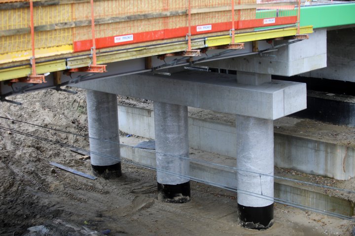 Była podniszczona kładka, będzie trzyprzęsłowy most z drogą rowerową. Przy ul. Trackiej roboty związane z budową nowego przejścia nad torami wkraczają w finałową fazę.