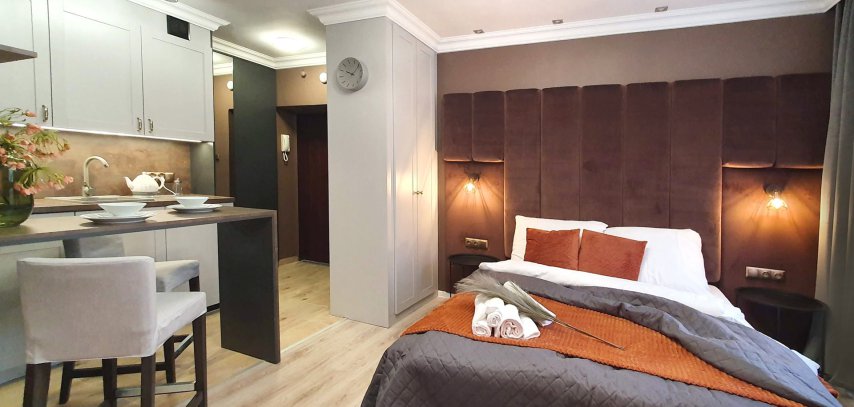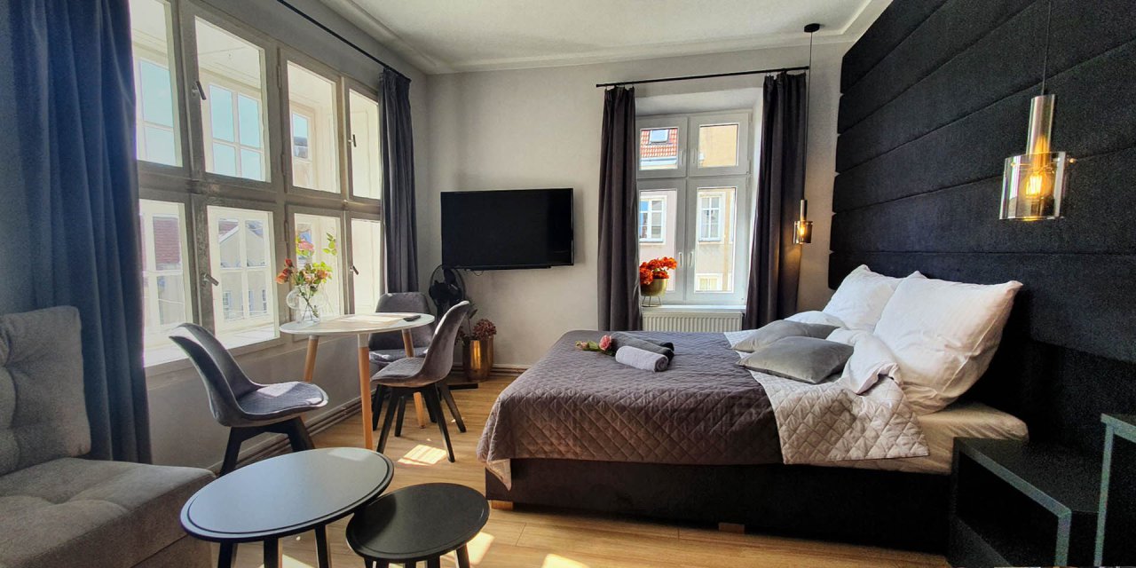 Jest też argument czysto praktyczny: przestrzeń i cena. DK Apartamenty są zazwyczaj większe niż typowy pokój hotelowy, a przy pobytach na 2+ noce wychodzi to po prostu korzystniej. Dla przykładu, w terminie 16-20.02.2026 hotele w Olsztynie kosztują około 1 200 zł za 4 noce dla dwóch osób, a u nas podobny pobyt zaczyna się od około 550 zł za 4 noce dla dwóch osób. I ważna rzecz: na portalach rezerwacyjnych ceny potrafią być wyższe przez prowizje, dlatego najkorzystniej zwykle wychodzi rezerwacja bezpośrednia - przez naszą stronę.