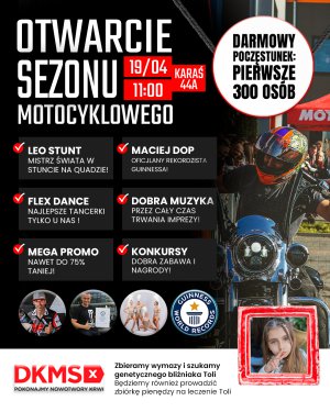 Motocykliści już nie raz udowodnili, że potrafią pomagać – teraz znów mogą pokazać siłę swojej społeczności. Nie zabraknie również emocji i atrakcji. W programie przewidziano m.in. pokaz mistrza świata w stuncie na quadzie Leo Stunt, występ rekordzisty Guinnessa, Maćka „Dopa” Bieleckiego, pokazy taneczne grupy Flex Dance Show, a także konkursy z nagrodami.