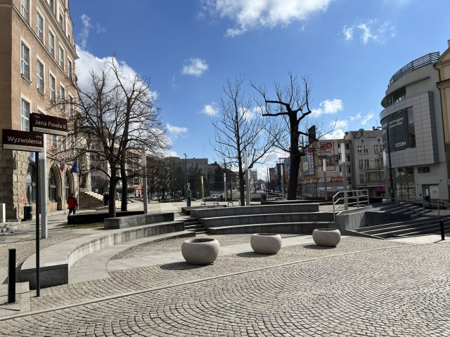 Kolejną z olsztyńskich przestrzeni, którą bierzemy pod lupę, jest Plac Jana Pawła II. To reprezentacyjne miejsce Śródmieścia, położone przy skrzyżowaniu ulic 1 Maja, Pieniężnego, 11 Listopada i alei Piłsudskiego.