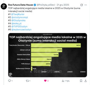 Tak wyraźna różnica w poziomie ruchu internetowego pokazuje, że w ostatnim czasie Olsztyn24 znalazł się na peryferiach lokalnego rynku mediów. Portal trafiał do ograniczonej grupy użytkowników i nie miał realnych możliwości rywalizacji z czołowymi serwisami informacyjnymi w regionie.