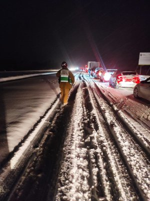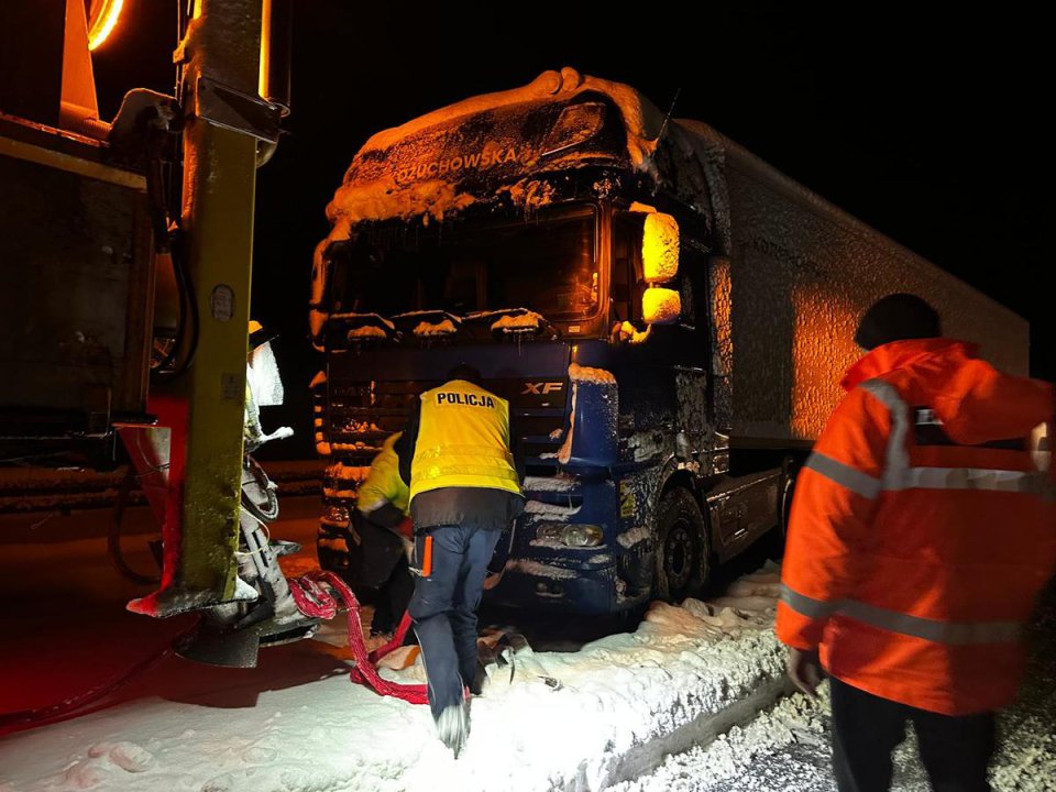 W nocy z 30 na 31 grudnia 2025 roku funkcjonariusze z Komendy Miejskiej Policji w Olsztynie i Komisariatu Policji w Olsztynku pracowali głównie na trasie S7, ale też DK51 i DK16. Policjanci od wtorkowego popołudnia interweniowali w związku z sytuacją na drogach spowodowaną trudnymi warunkami atmosferycznymi. Przez cały wieczór i noc do mundurowych pracujących na drogach dołączali policjanci wzywani do służby w trybie alarmowym.