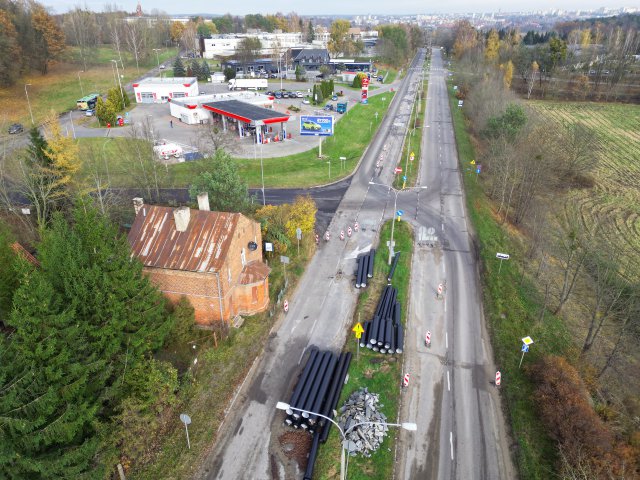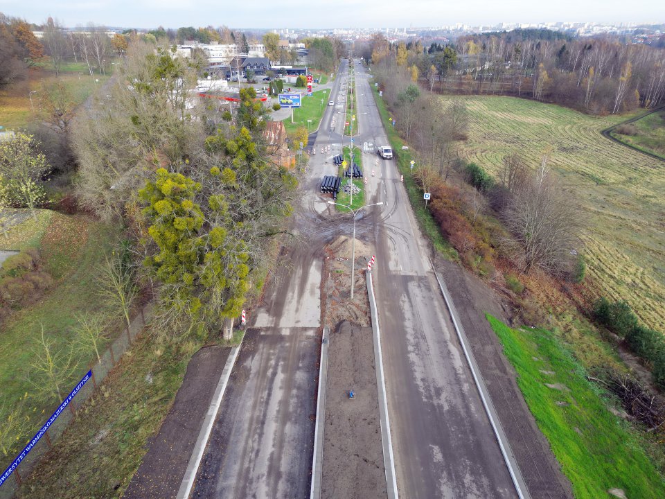 Poprzedni wiadukt został rozebrany. Przy nowej konstrukcji trwają aktualnie prace ciesielsko-zbrojeniowe. Duże zmiany widać już na odcinku od granicy miasta do skrzyżowania z ulicą Nad Łyną, gdzie ma powstać rondo turbinowe. Tę część inwestycji wypełnił już asfalt na dwóch jezdniach i drodze rowerowej. Ponadto kostką brukową wypełniono chodniki.