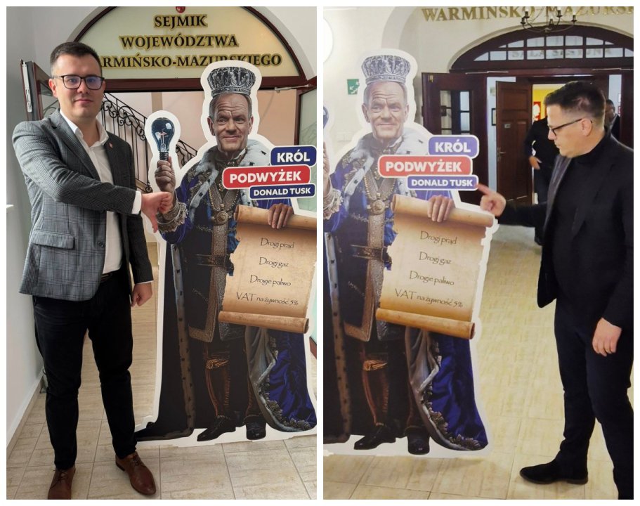 Kartonowy Donald Tusk pojawił się we wtorek, 16 grudnia, na XX sesji Sejmiku Województwa Warmińsko-Mazurskiego. Był to pomysł radnych PiS, którzy pokazali premiera jako „króla podwyżek”.