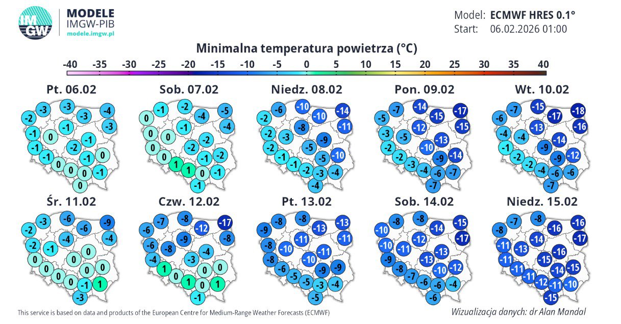Już od weekendu (7-8 lutego) nad Polskę napłynie chłodne powietrze, przynosząc powrót zimowej aury. Według prognoz Instytutu Meteorologii i Gospodarki Wodnej, w ciągu najbliższych 10 dni, szczególnie we wschodniej części województwa, spodziewać należy się silnych mrozów.