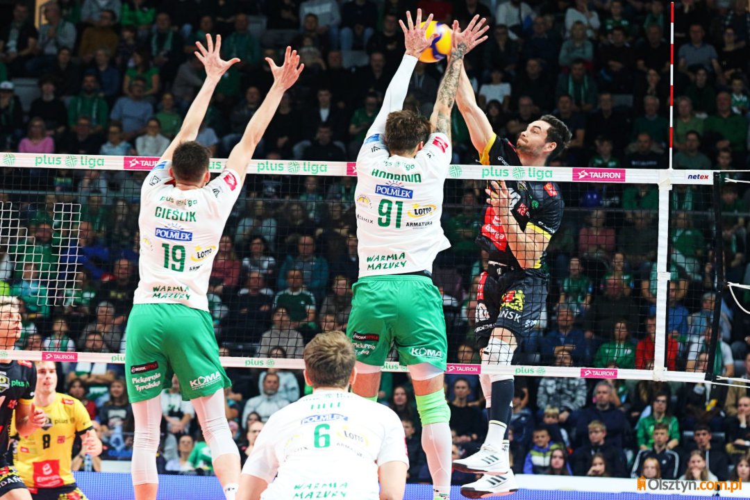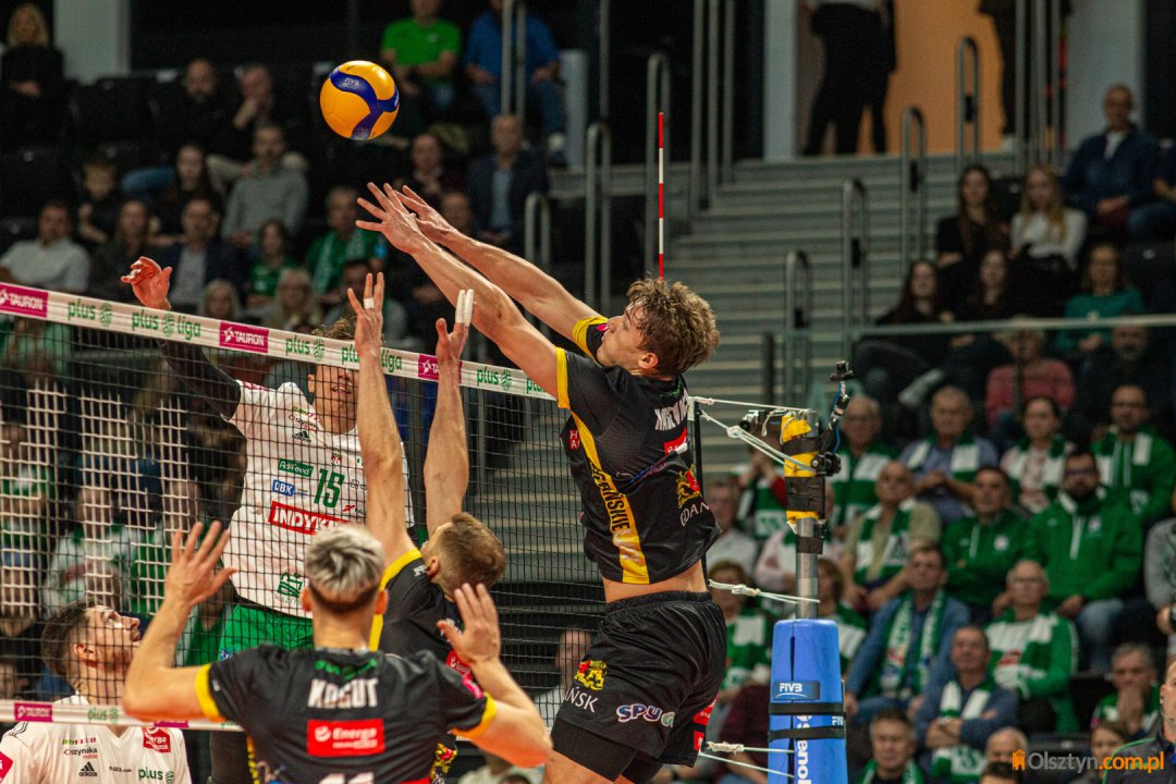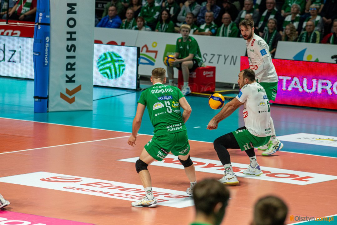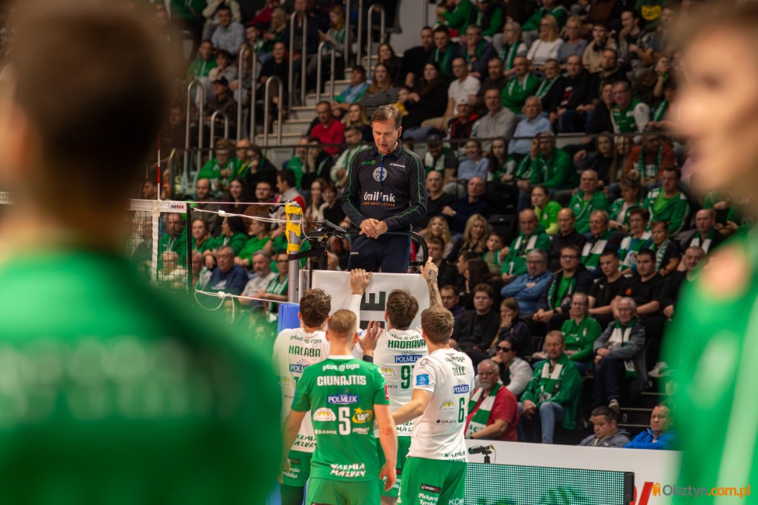 Trener Daniel Pliński nie mógł skorzystać z Kuby Hawryluka oraz Arthura Szwarca, który z powodu lekkich znaleźli się poza składem meczowym. „Czternastkę" uzupełnili Kacper Sienkiewicz i Szymon Patecki. "Derby Północy", jak określa się takie spotkania, przy wypełnionej po brzegi hali Urania rozpoczęli więc: Tille, Karlitzek, Halaba, Lipiński, Majchrzak, Hadrava oraz Ciunajtis (libero).