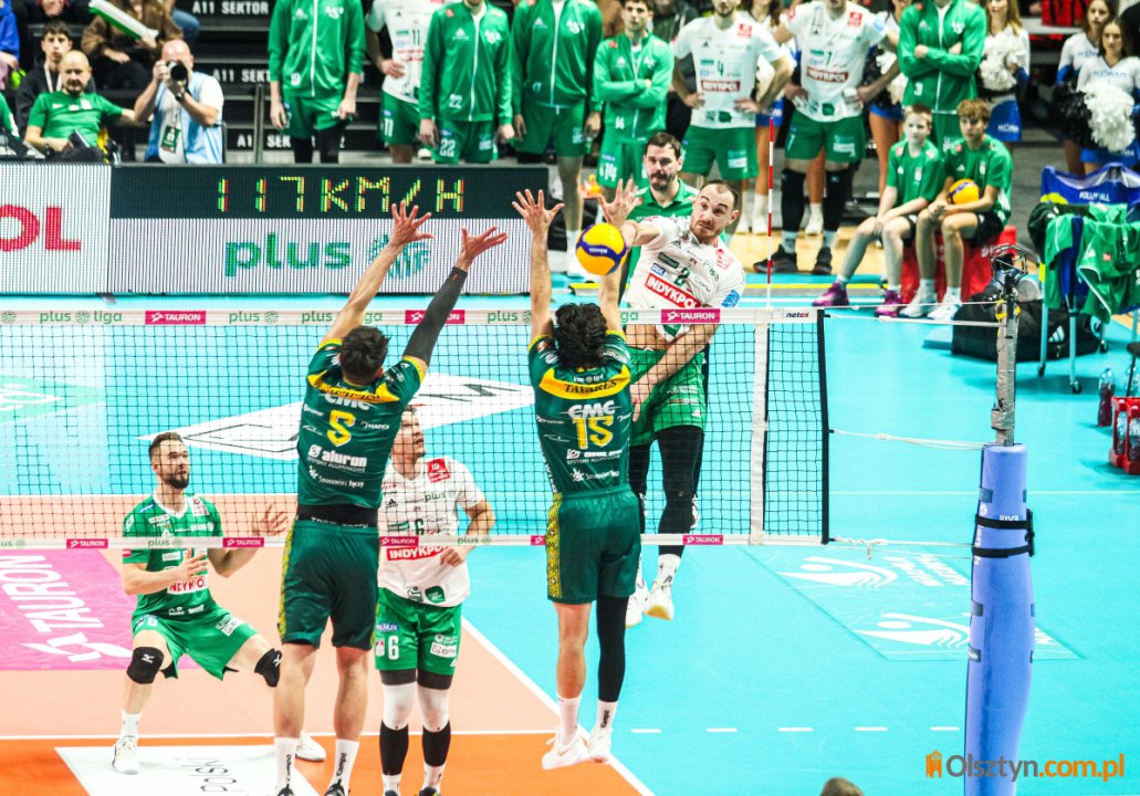 Czwarta partia to ponownie walka punkt za punkt. Gdy udanym blokiem popisał się Lipiński, ekipa ze stolicy Warmii i Mazur prowadziła 7:6. Taki wynik mieliśmy tylko przez chwilę, bowiem potem do głosu doszli przyjezdni. Grali oni zdecydowanie lepiej na kontrze, przez co zbudowali dwupunktową przewagę. Olsztynianie nie poddali się – po asie Halaby mieliśmy 19:19. Ostatecznie set zakończył się ich zwycięstwem 25:22.