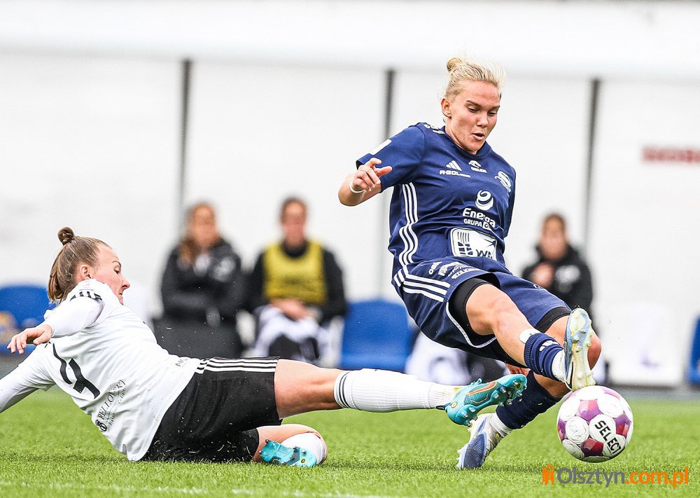 Przez 45 minut podopieczne Dariusza Maleszewskiego realizowały plan defensywny. Dramat rozegrał się tuż przed gwizdkiem na przerwę. Zamiast spokojnie wybić piłkę i utrzymać bezbramkowy remis, olsztynianki popełniły błąd w wyprowadzeniu. Futbolówkę przejęła rywalka, a ratująca sytuację Gabriela Kędzia zagrała ręką w polu karnym. Rzut karny na gola zamieniła Piętakiewicz, podcinając skrzydła olsztyńskiej drużynie w najgorszym możliwym momencie.