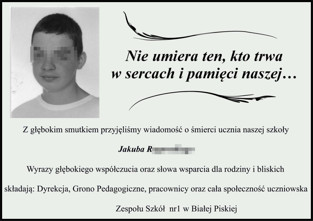 - Z głębokim żalem i smutkiem przyjęliśmy wiadomość o tragicznej śmierci naszego ucznia, Jakuba, ucznia Technikum Pojazdów Samochodowych w Zespole Szkół nr 1 w Białej Piskiej. 7 października 2025 roku Kuba zginął w wypadku samochodowym. Był młodym, serdecznym i pełnym pasji człowiekiem, którego uśmiech i życzliwość na zawsze pozostaną w naszej pamięci - czytamy w mediach społecznościowych szkoły.