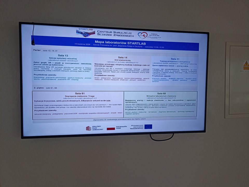 Centrum STARTLAB to innowacyjna przestrzeń edukacji i doradztwa zawodowego, która powstała w Szkole Policealnej im. Z. Religi przy ul. Mariańskiej 3A w Olsztynie, czyli tzw. Medyku. Dzięki wykorzystaniu sztucznej inteligencji i immersji, korzystający z centrum mogą w bezpiecznych i kontrolowanych warunkach przygotować się do funkcjonowania w przyszłym środowisku pracy.