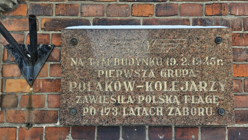 Obecnie na ścianie kamienicy widnieje pamiątkowa tablica, na której umieszczono następujący napis: „Na tym budynku 19.2.1945 r. pierwsza grupa Polaków-kolejarzy zawiesiła polską flagę po 173 latach zaboru”.