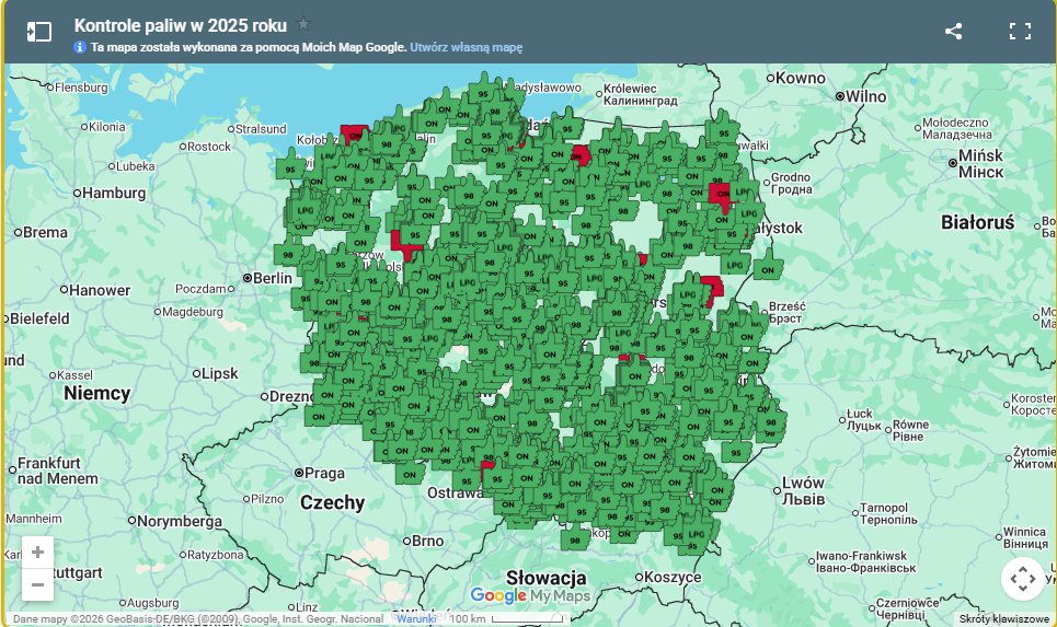 Mapa skontrolowanych stacji paliw przez UOKiK w 2025 roku
