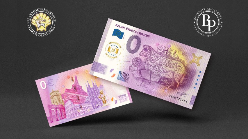 Nowy banknot pamiątkowy o nominale 0 euro, promujący Szlak Świętej Warmii, powędruje teraz do Europy.