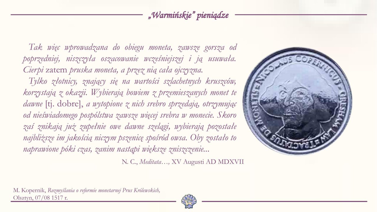 Naprawą tego "lichego pieniądza" zajmował się astronom, Mikołaj Kopernik przez 30 lat swojej działalności.
