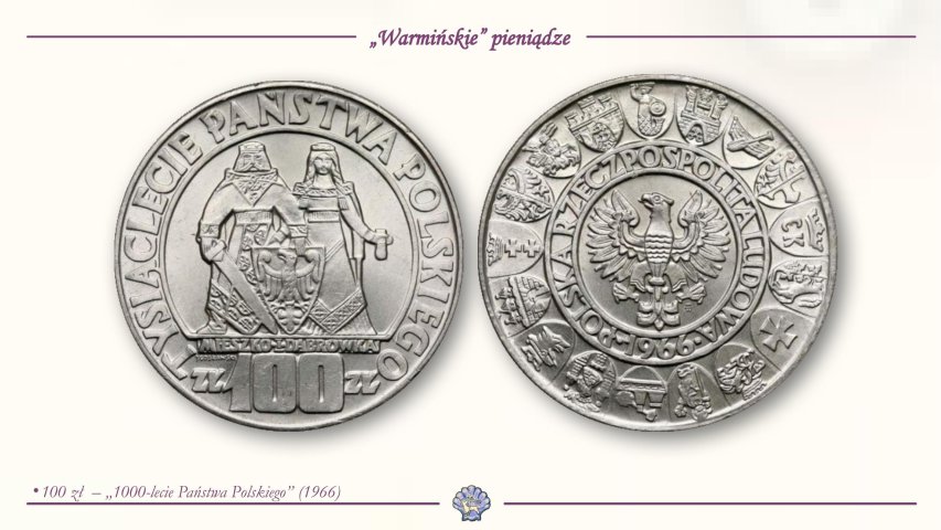 Z okazji 1000-lecia Rzeczypospolitej (1966 roku) wydano pierwszą warmińsko-mazurską monetę okolicznościową. Pojawił się na niej herb miasta Olsztyna.