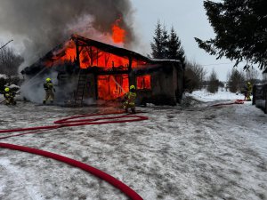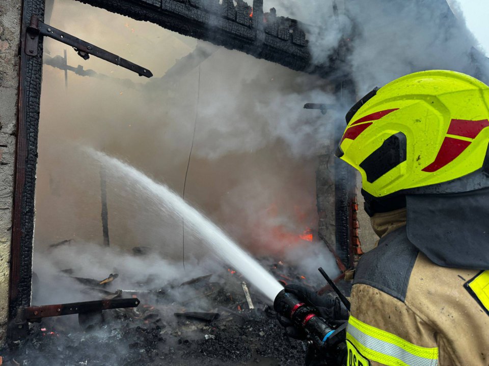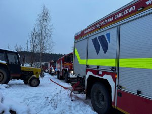 Po dotarciu pierwszych zastępów na miejsce zgłoszenia i przeprowadzeniu rozpoznania okazało się, że budynek gospodarczy był już całkowicie objęty ogniem. Istniało realne zagrożenie przeniesienia się pożaru na znajdujący się w bezpośrednim sąsiedztwie budynek mieszkalny.