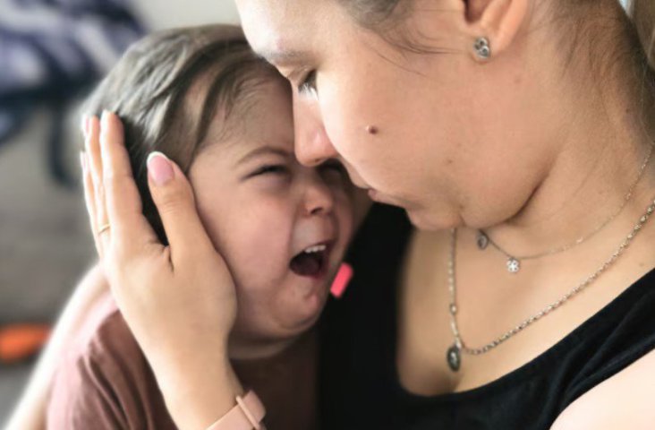 Amelka w objęciach mamy