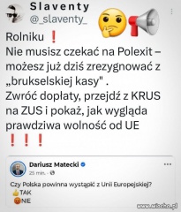 @gość: To mała wioska jest, gdzie gospodarstwo posiadam ekologiczne. Prowadzę je tam sam i czterdzieści lat posiadam i dobrze żyję. Więc pomyślałem że, w pole traktorem pojadę, bo Słońce świeci, świeci, świeci. Niestety wiatr od Tracka wiał, a nocą w spalarni śmieci puszczali dymy z opon na jezioro. Prognoza pogody się na dzisiejszą noc nie sprawdziła !