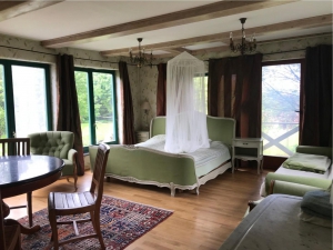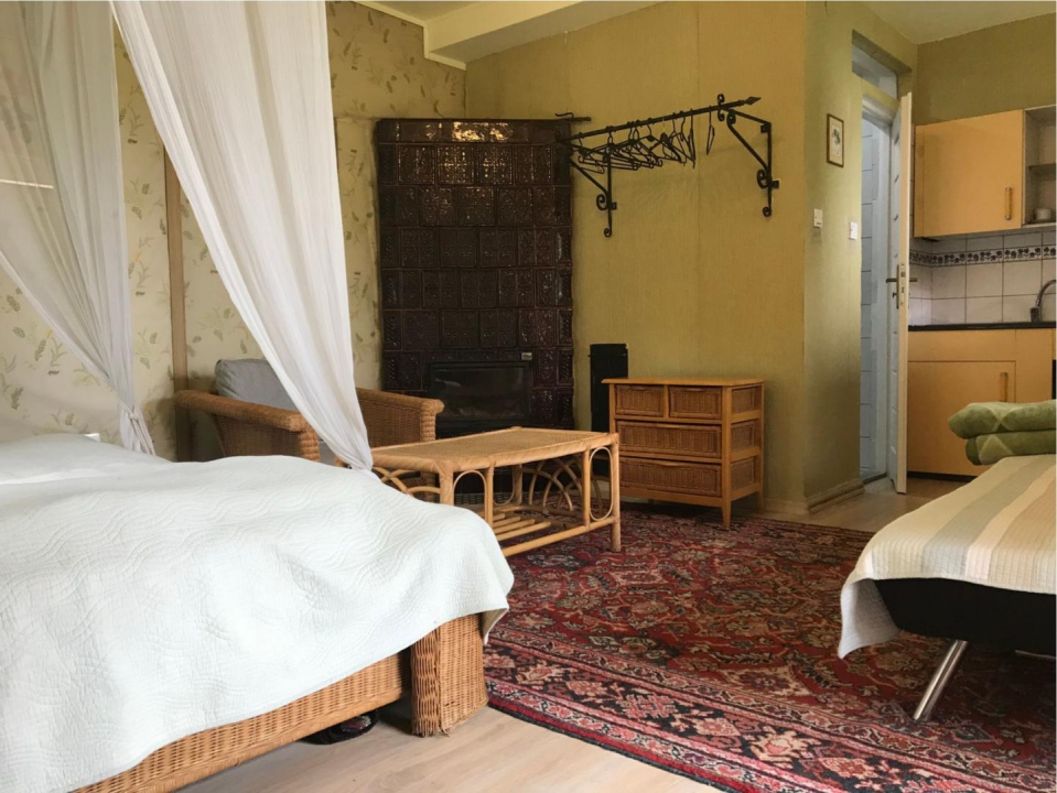 Budynki drewniane z grubych bali całoroczne solidnie ocieplone, dachy pokryte dachówką, a nich panele słoneczne. Do dyspozycji mamy 10 pokoi o powierzchni 35-45 m2, 2 i 3-osobowych z łazienkami i aneksami kuchennymi oraz 2 apartamenty 2-pokojowe o powierzchni 70 m2. Większość posiada piec kaflowy z szybą żaroodporną, co zapewnia zimą przyjemne ciepło nie tylko w pokoju, ale także w łazience. Ponadto do dyspozycji gości jest jadalnia, sala kominkowa, sala gimnastyczna, gabinet masażu, sauna, solarium, bilard, tarasy z wygodnymi kanapami i murowanym grillem, ogród zimowy i wiele innych atrakcji.