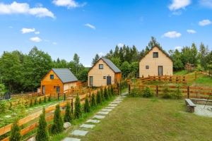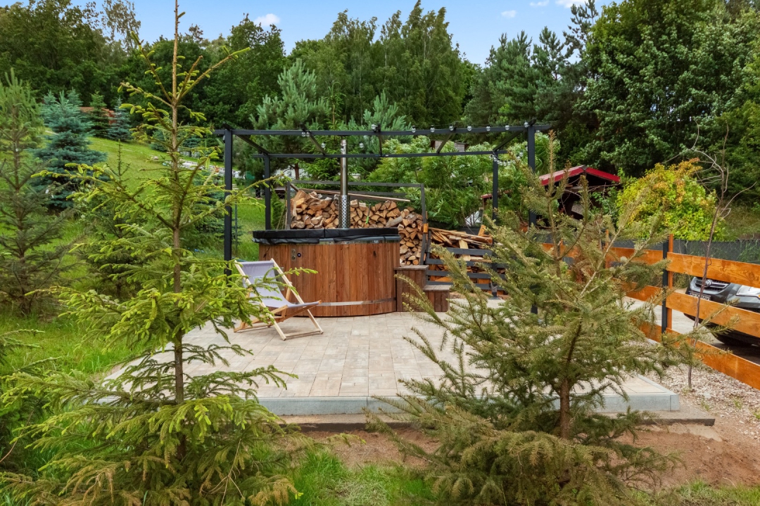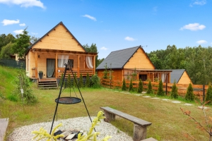 Każdy domek osobno ogrodzony z prywatnym miejscem na ognisko i grill.