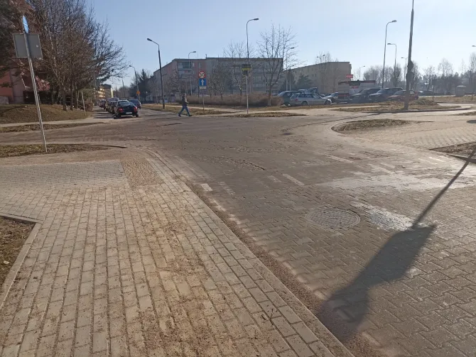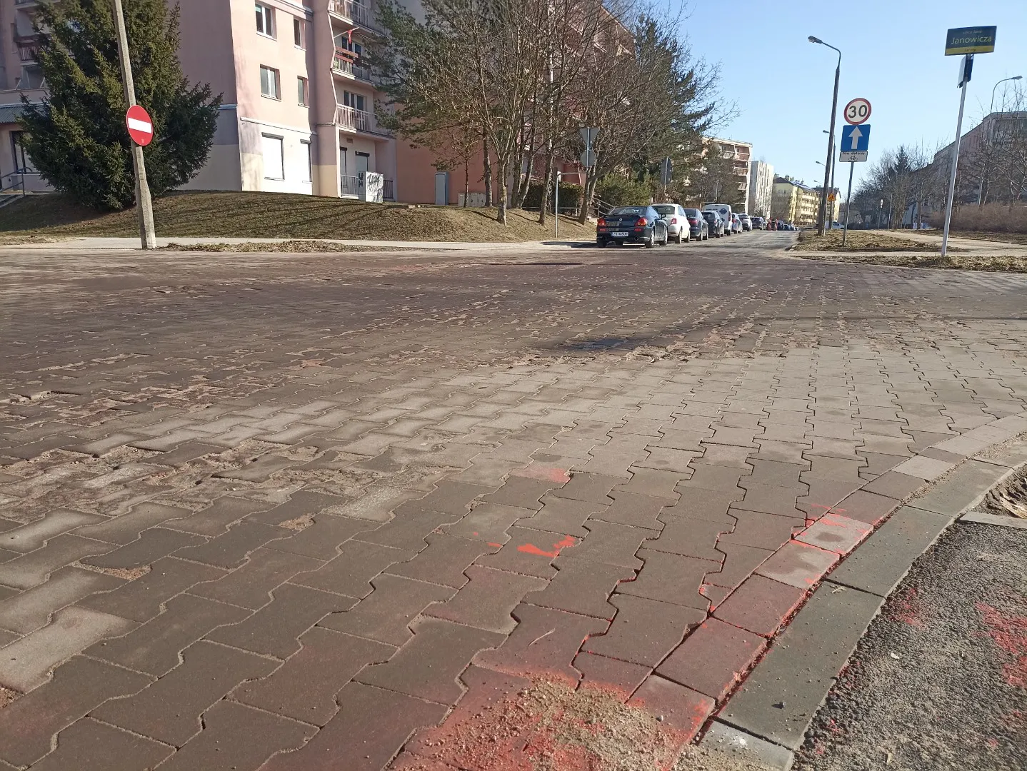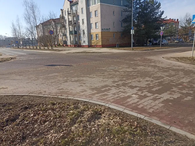 Ledwo jesienią oddali to skrzyżowanie do użytku, a już po pierwszej zimie kostka jest starta na wiór.